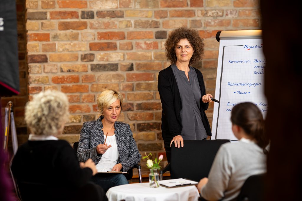 Das bedeutet: In Konflikt- oder Krisensituationen – egal ob „echt“ oder nur „gefühlt“ – muß zuerst der Streß reduziert werden, indem eine Aussicht auf Bedürfnisbefriedigung eröffnet wird. Deshalb blicken unsere Berater besonders scharf auf die Bedürfnisse der Beteiligten, egal, welche Art von Thema zu bearbeiten ist. Als ausgebildete Mediatoren wissen sie, wie Bedürfnisse funktionieren und wie sie zu erkennen sind.